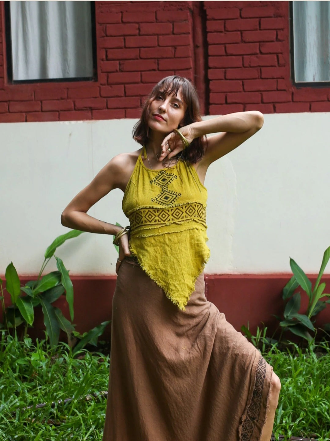 Wild Flower Top je zdobený hand made blokovou potlačou, ktorá mu dodáva jemný vzhľad, s...