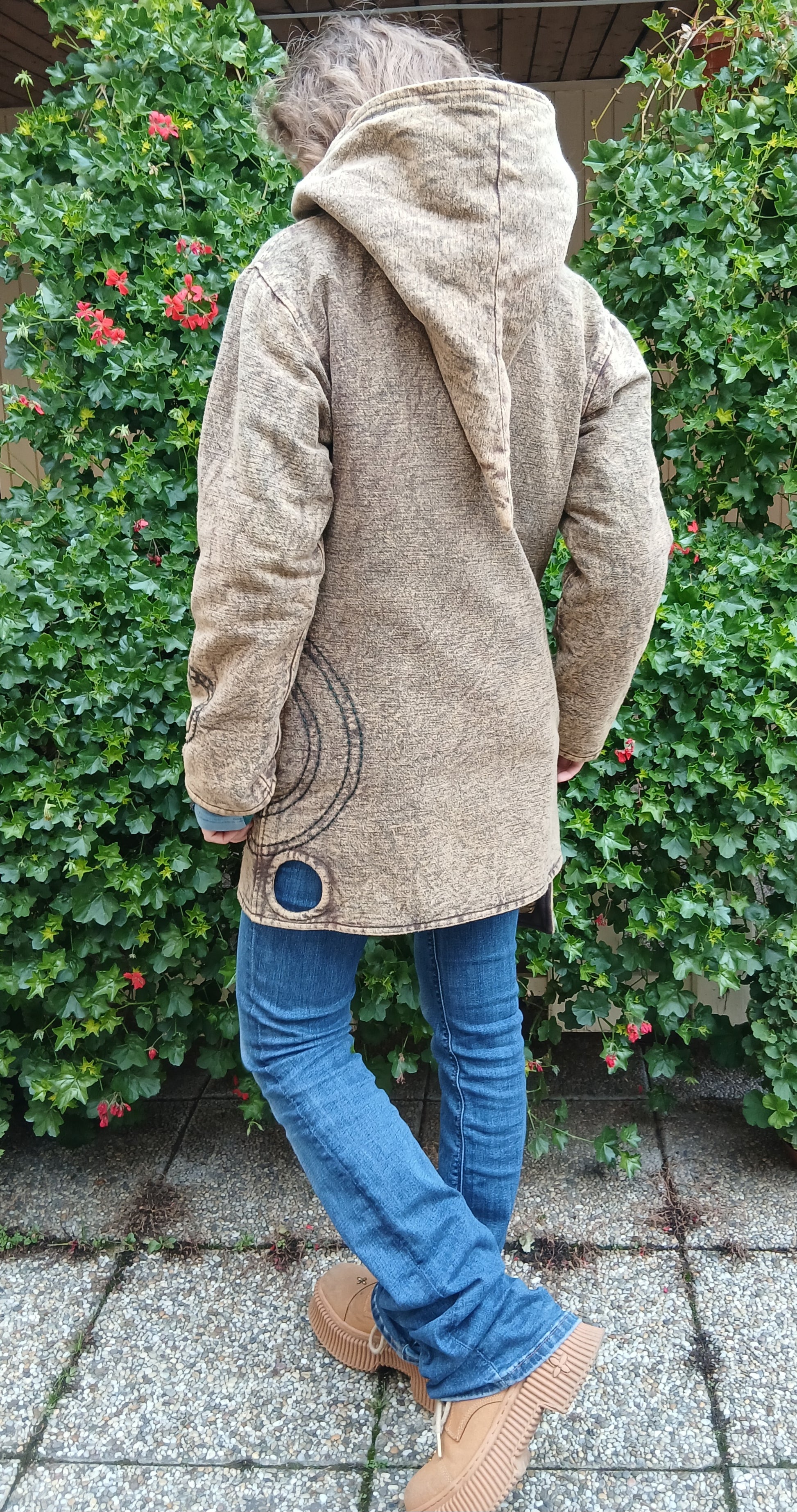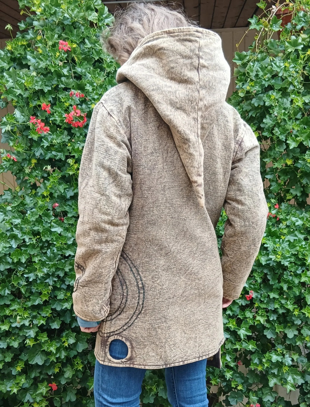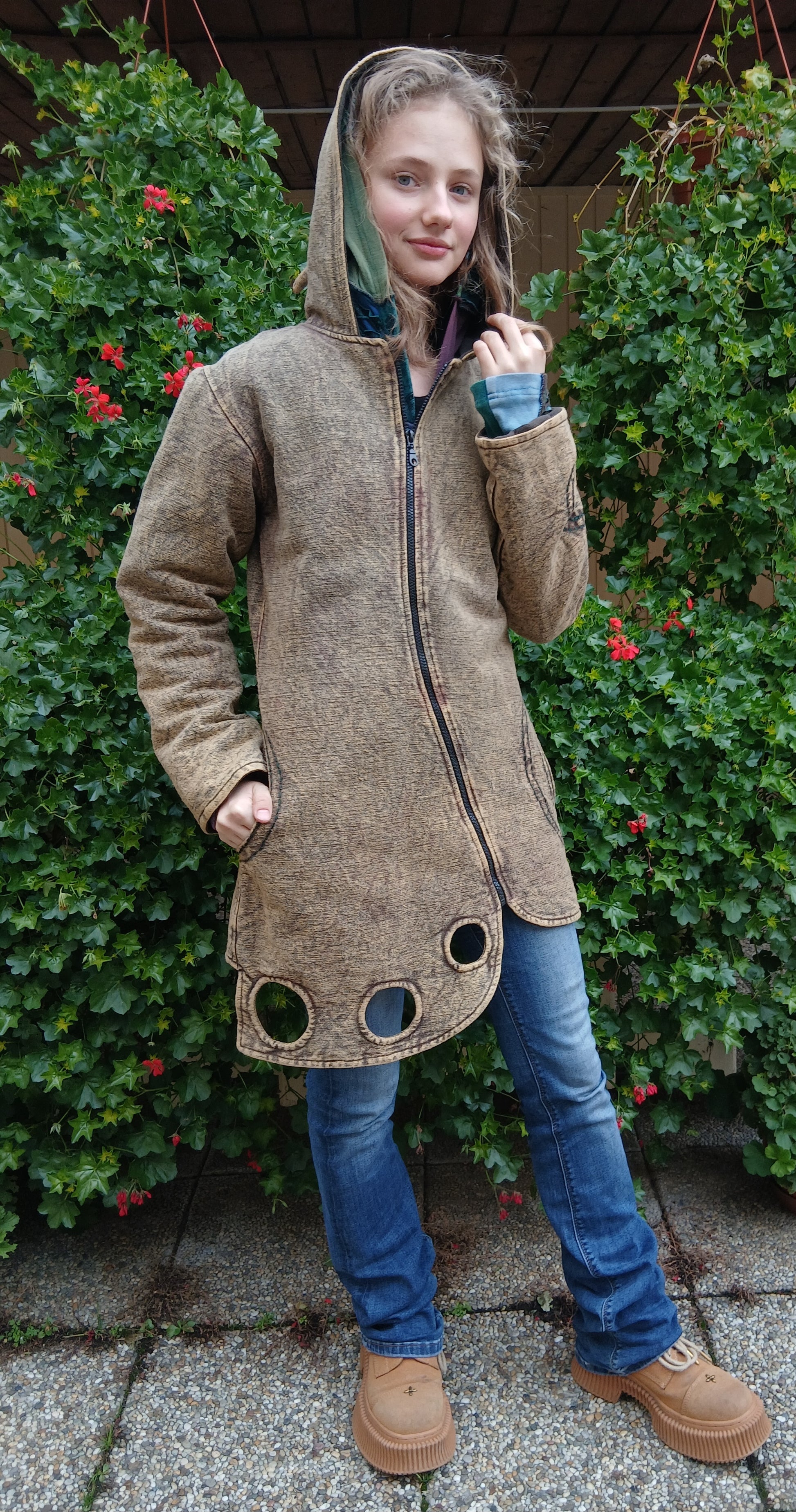 Dámska predĺžená bunda z Nepálu je dokonalým spojením pohodlia a štýlu. Vyrobená z kvalitnej bavlny a podšitá mäkkým flisom, poskytuje výbornú ochranu pred chladom. Tento dizajnerský kúsok sa vyznačuje originálnym vzhľadom, ktorý kombinuje hippy a boho štýl. Svojím jedinečným strihom a detailmi, ako sú ručne vyrobené vzory, dodáva každej žene pocit voľnosti a sebavedomia. Ideálna na chladné dni, bunda nielen zahreje, ale aj zaujme svojím nezameniteľným vzhľadom a osobitého charakteru. Perfektný kúsok pre milovníčky ekológie a bohémskej módy.