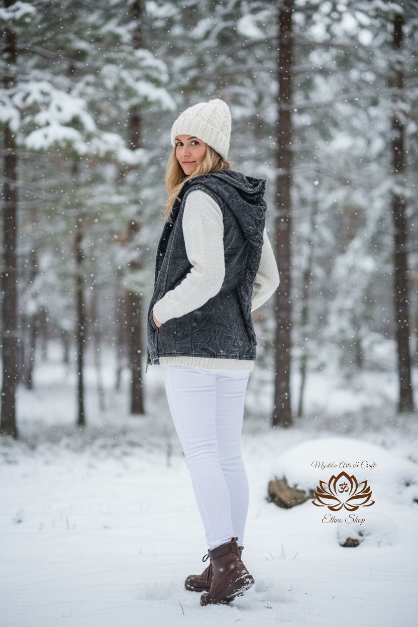 Táto vesta je skvelou voľbou pre milovníkov pohodlia a originálnych kúskov. Tento kúsok kombinuje etno a hippy štýl so skvelými funkčnými vlastnosťami. Farba je dosiahnutá technikou stone wash, čo dáva každému kúsku jedinečný vzhľad. Vesta je vyrobená zo 100% bavlny a má flísovú podšívku, ktorá zabezpečuje teplo a komfort počas chladných dní. Vďaka kapucni a špecifickému dizajnu je ideálna na jeseň a zimu. Tento ručne vyrobený kúsok z Indie je skutočným príkladom kvalitnej a etickej výroby.