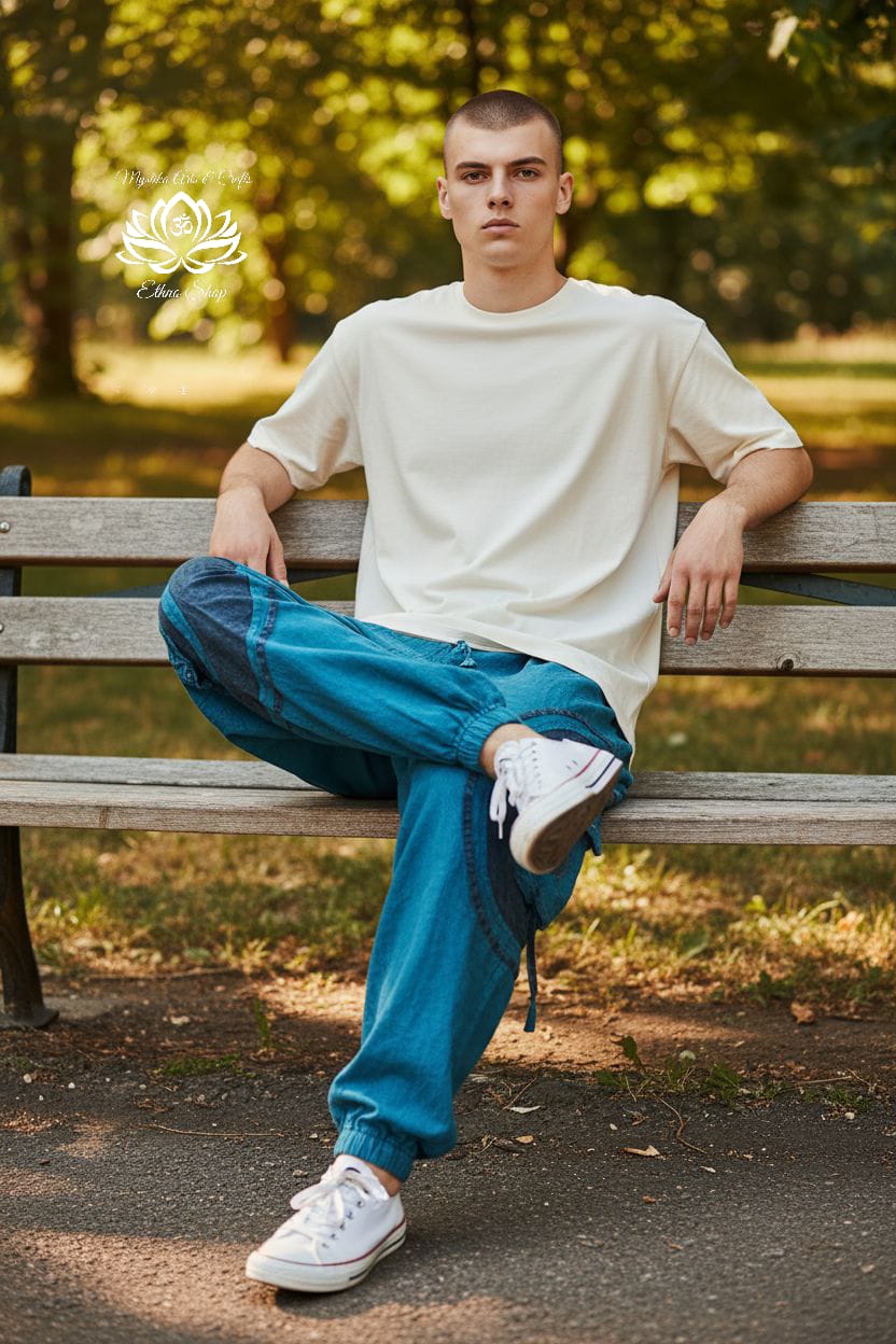 Vďaka unisex strihu sa perfektne prispôsobia postave, majú niekoľko praktických vreciek a elastický pás pre maximálne pohodlie. Skvelé na cestovanie, jogu, festivaly alebo bežné nosenie.
