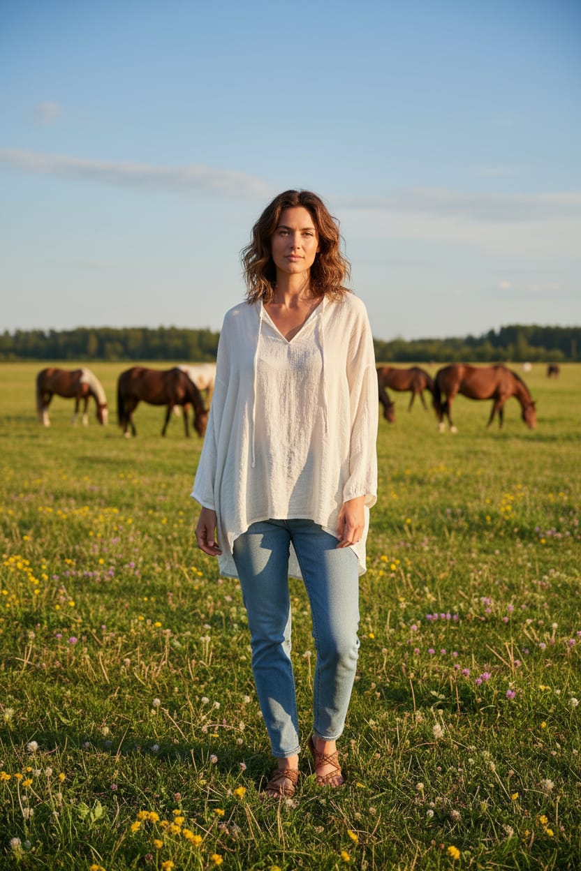 Táto bavlnená blúzka je skvelou voľbou pre ženy, ktoré hľadajú spojenie pohodlia, kvality a prírodného štýlu.