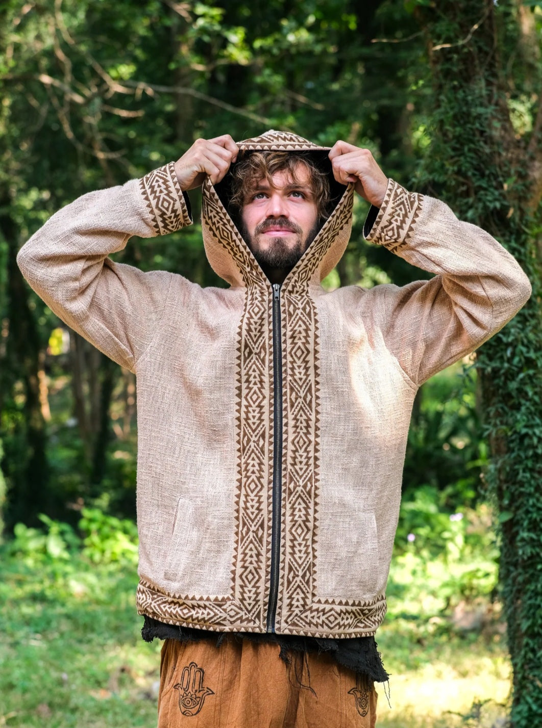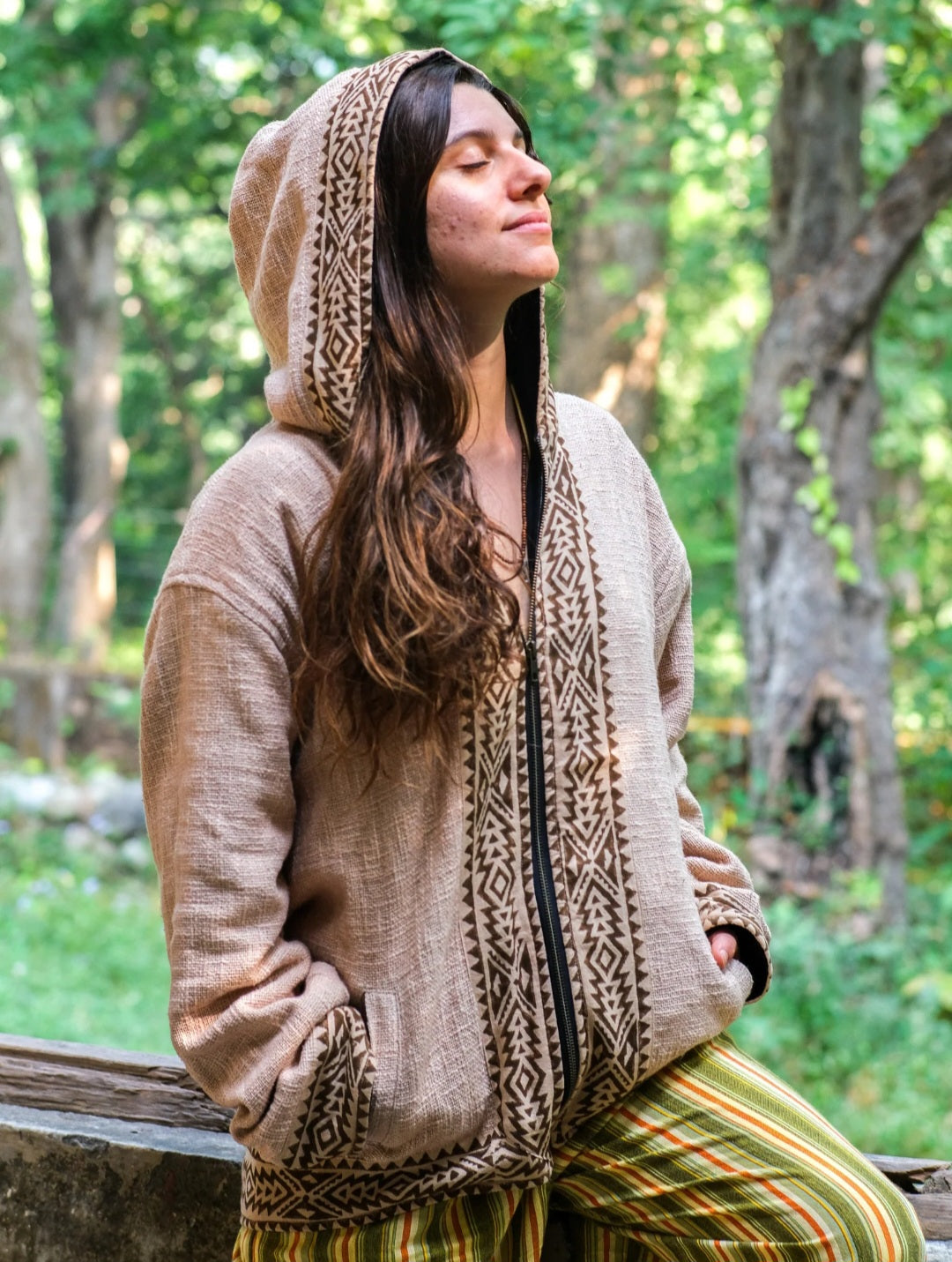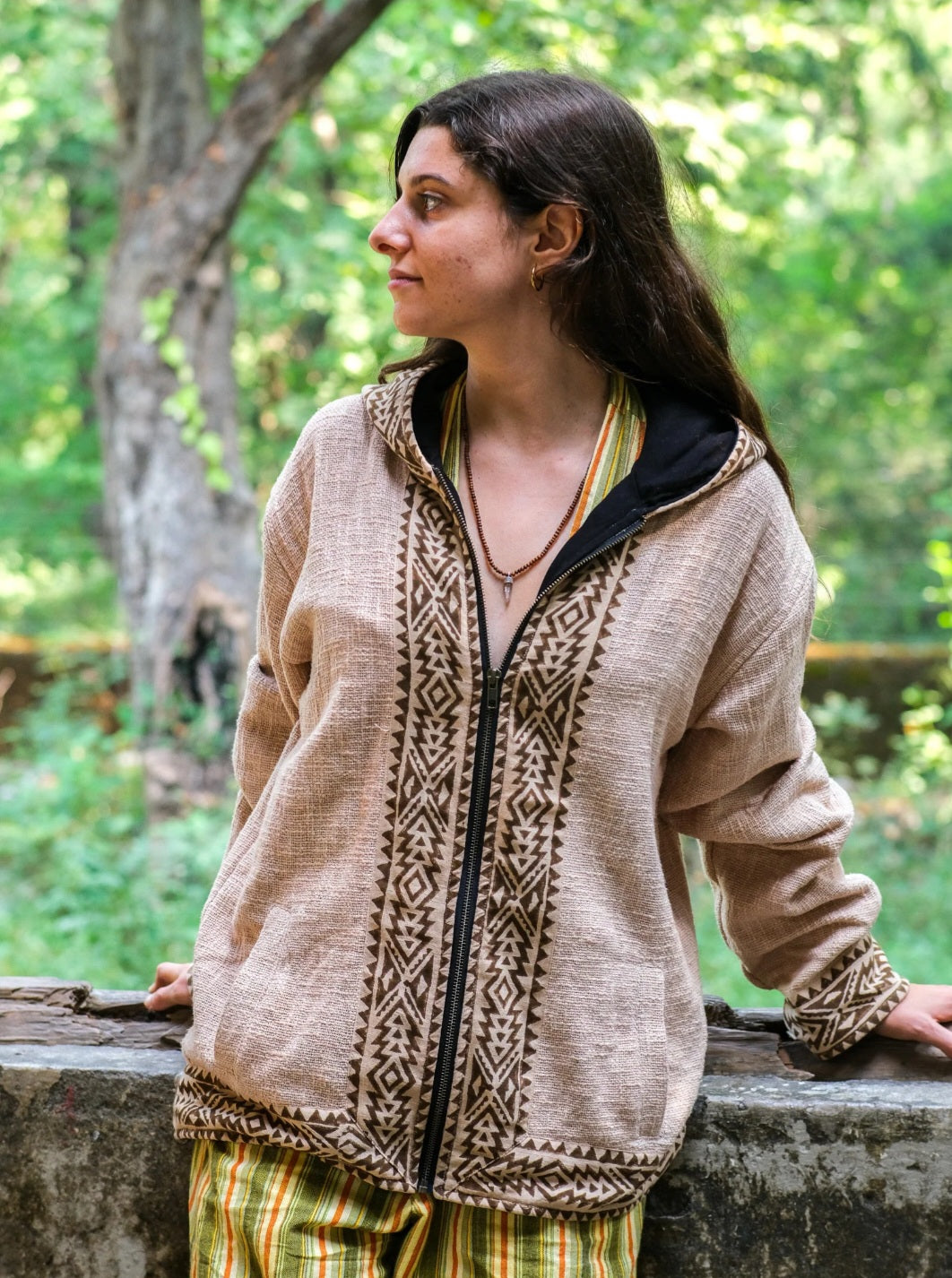 Bunda Tirth je vyrobená z vysoko kvalitnej tkanej bavlny a je perfektným doplnkom do každého šatníka. Vďaka elegantnému vzhľadu a jemným detailom s blokovou potlačou dodá autentický boho chic nádych vášmu out fitu. Doprajte si úžasný pocit pohodlia a štýlu prírodných materiálov s týmto originálnym kúskom. Unisex