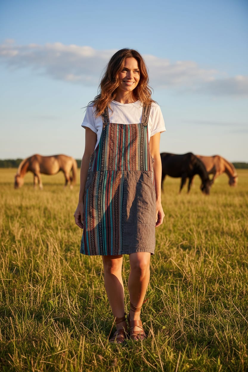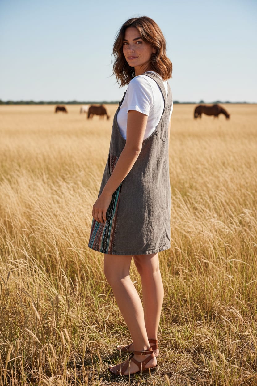 Objavte dokonalé spojenie pohodlia a štýlu s týmito overalovými šatami z kvalitnej hrubšej tkanej bavlny. Vďaka stone wash úprave majú jedinečný, jemne vintage vzhľad, ktorý sa ľahko kombinuje s tričkom, košeľou alebo svetríkom. Vynikajú originálnym tkaným farebným vzorom, ktorý robí zo šiat jedinečný kúsok.