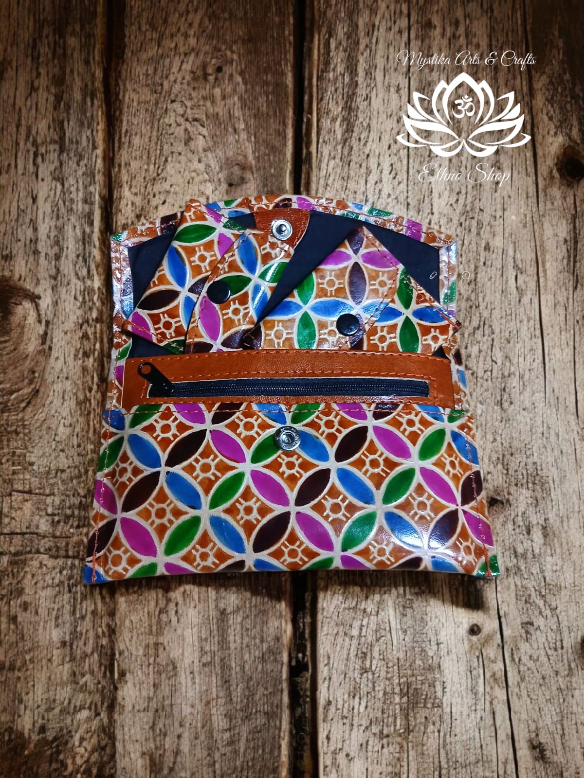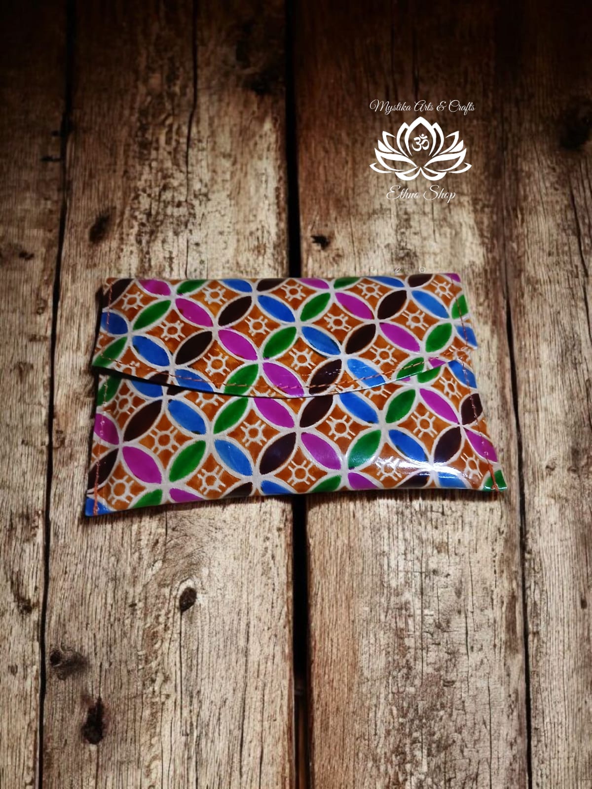 Objavte krásu tradičného indického remesla s touto ručne vyrábanou peňaženkou z prírodnej kože. Každý kus je originál – zdobia ho žiarivé farby a rôzne autentické etnické vzory, ktoré mu dodávajú neopakovateľný charakter.
