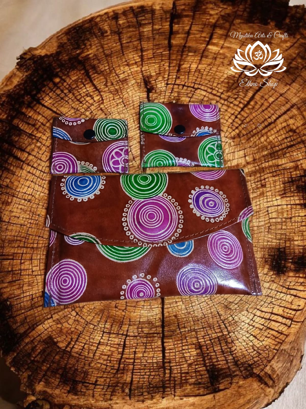 Objavte krásu tradičného indického remesla s touto ručne vyrábanou peňaženkou z prírodnej kože. Každý kus je originál – zdobia ho žiarivé farby a rôzne autentické etnické vzory, ktoré mu dodávajú neopakovateľný charakter.