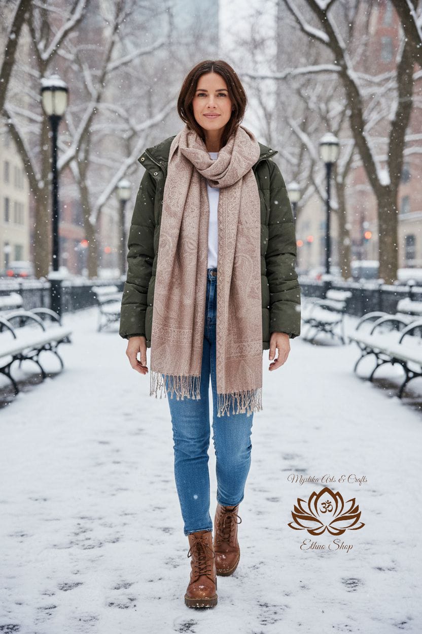 Doprajte si jemnosť a eleganciu s touto ručne vyrobenou šatkou z Indie. Kombinácia kvalitnej viskózy a hodvábneho vlákna vytvára ľahký, príjemne hebký materiál, ktorý krásne splýva a pôsobí luxusne na dotyk.