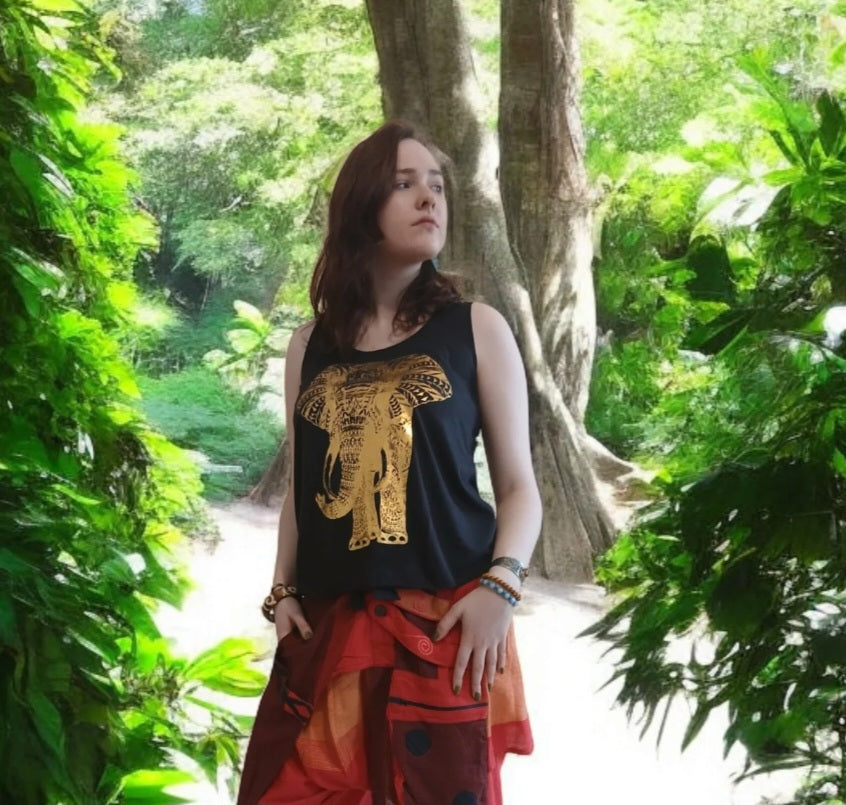 Top Rami je vyrobený z jemnej a na dotyk veľmi príjemnej tenučkej viskozy, čo mu dodáva neobyčajnú ľahkosť a vzdušnosť. Top zdobí zlatá potlač s motívom slona, ktorá ho robí zaujìmavým exotickým kúskom. Pridaj tento kúsok do svojho šatnìka a cíť sa fantasticky počas celého leta.