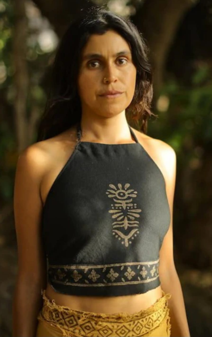 Wild Flower Top je zdobený hand made blokovou potlačou, ktorá mu dodáva jemný vzhľad, s uvezovaním na zadnej strane, dostupný v bielej, čiernej a béžovej farbe, ktoré sú základnými prvkami každého šatníku. Kombinácia bavlny a juty vám zabezpečia pozoruhodný pohodlie pri nosení. Dostupné v jednej univerzálnej veľkosti
